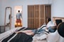 Hiding behind the soothing minimalism is a great amount of detail, from handcrafted furniture to works by local artisans, creating an idyllic vacation space that could easily be described as bohemian bourgeois. The building juxtaposes light, shadow and space in aesthetically pleasing combinations that catch the eye of our discerning visitors.