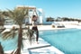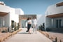 Bioclimatic architecture, natural stone, delightfully shaded sitting areas, Mediterranean palm trees and pleasantly whitewashed surfaces add to the overall island feel. A touch of natural pinewood beams and reeds in our outdoor spaces coupled with American oak indoors, enhances the natural vibe. Breathtaking views of the Aegean Sea and its famous sunsets provide a wondrous backdrop to the property.