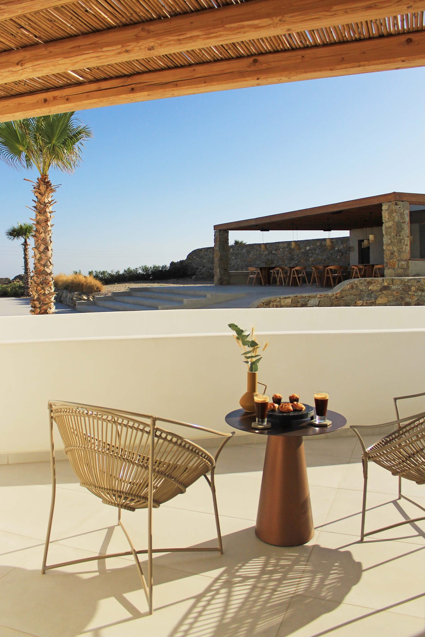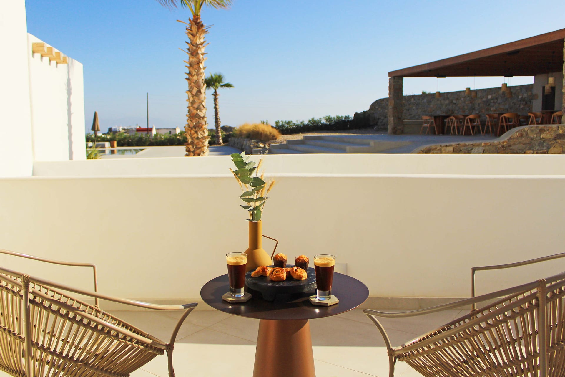The private 10 sqm balcony sits right at the front of the pool, creating a pleasant connection to the hotel’s lively yet soothing surroundings. Perfect for enjoying fresh air throughout the day, this room combines extra space with a laid-back holiday feel, offering a comfortable stay at Adama Hotel Mykonos.
